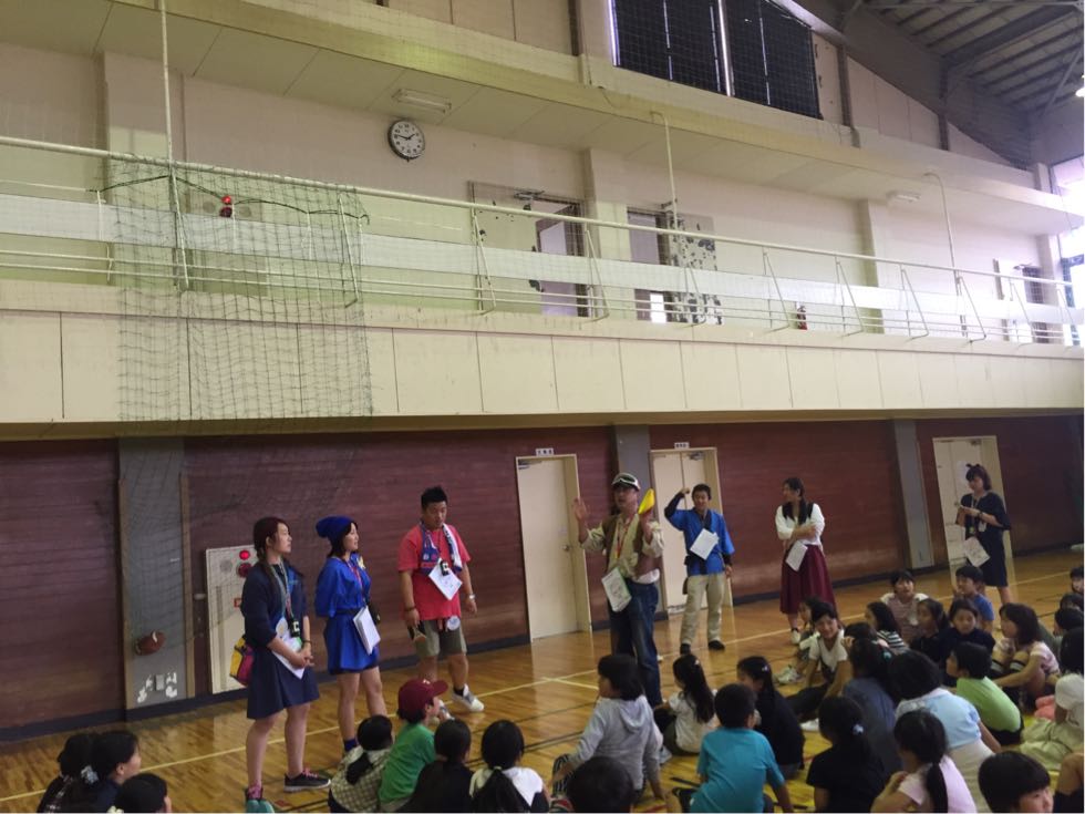 岩出山、雨が降ったり止んだり。子どもたちは、体育館で天空のメロンをゲットすべく奮闘しています。もうすぐメロン登場です!